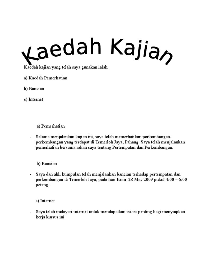 Temubual c kaedah rujukan 60 dapatan kajian 70 rumusan 80 lampiran 90 rujukan 2 10 penghargaan. Kaedah Kajian Tugasan Kerja Kursus Geografi PT3 2016 boleh dihuraikan lagiPentaksiran Tingkatan 3. Kaedah kajian menyatakan kaedah kajian yang digunakan 4.