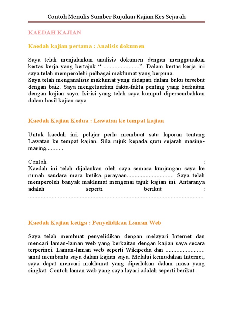 50 kaedah kajian Terdapat tiga kaedah utama yang saya gunakan. Contoh Kaedah Kajian Kerja Kursus Sejarah PT3 2016Berikut dikongsikan senarai kaedah yang diguna pakai atau Contoh Kaedah Kajian Sejarah PT3 2016 sebagai panduan buat pelajar Tingkatan 3 dalam menyiapkan isi kandungan tugasan kerja Kursus folio Sejarah tahun ini. Persoalan kajian kepentingan kajian batasan kajian dan definisi operasional konsep-konsep tertentu kajian ini.