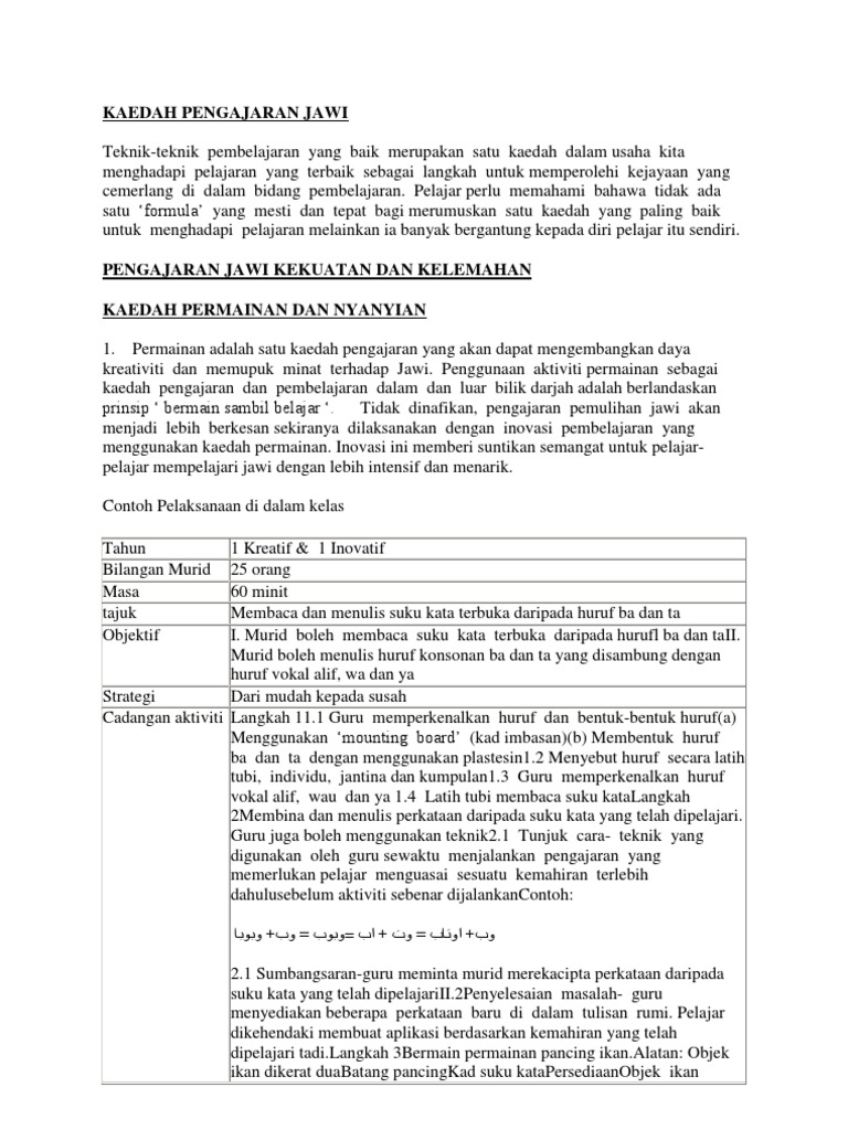 Kaedah Pengajaran Pembelajaran Jawi Pdf
