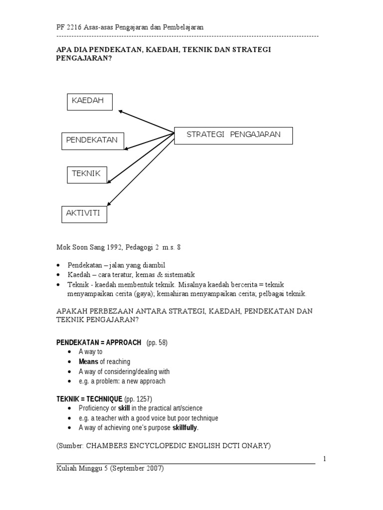 Ciri kepimpinan guru bersifat autokratik di mana murid tidak berpeluang untuk menyumbangkan idea dan pendapatnya. Bmm3171 konsep strategi pendekatan kaedah dan teknik. Reka bentuk pengajaran adalah satu disiplin dalam pendidikan yang memberikan tumpuan kepada memberikan kefahaman terhadap proses pengajaran dan cara-cara meningkatkan proses pengajaran dan pembelajaran.