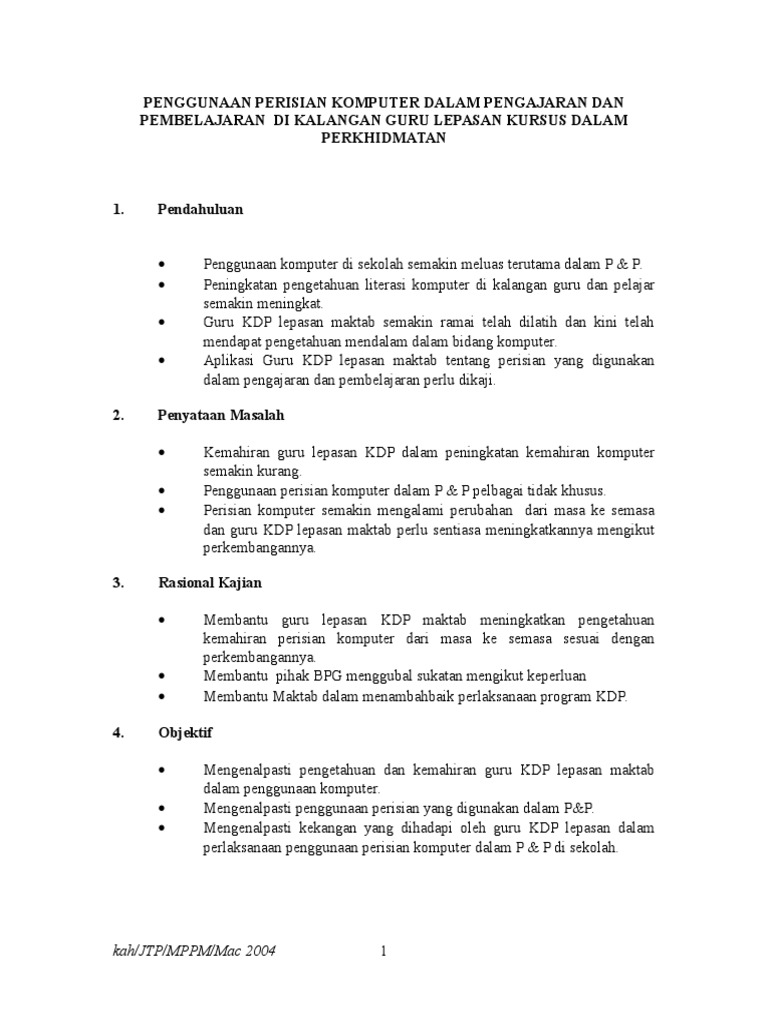Contoh Proposal Kajian Tindakan 1. Sorotan literatur 4 20 fokus kajian isu keprihatinan 5 21 tinjauan masalah 5 22 analisis tinjauan masalah 6 30 objektif kajian soalan kajian 7 31 objektif kajian 7 32 soalan kajian 7 40 kumpulan sasaran 8 50 tindakan 9 51 prosedur tindakan 9 52 cara mengumpul data 13 53. Objektif kajian persoalan kajian samb contoh objektif kajian.