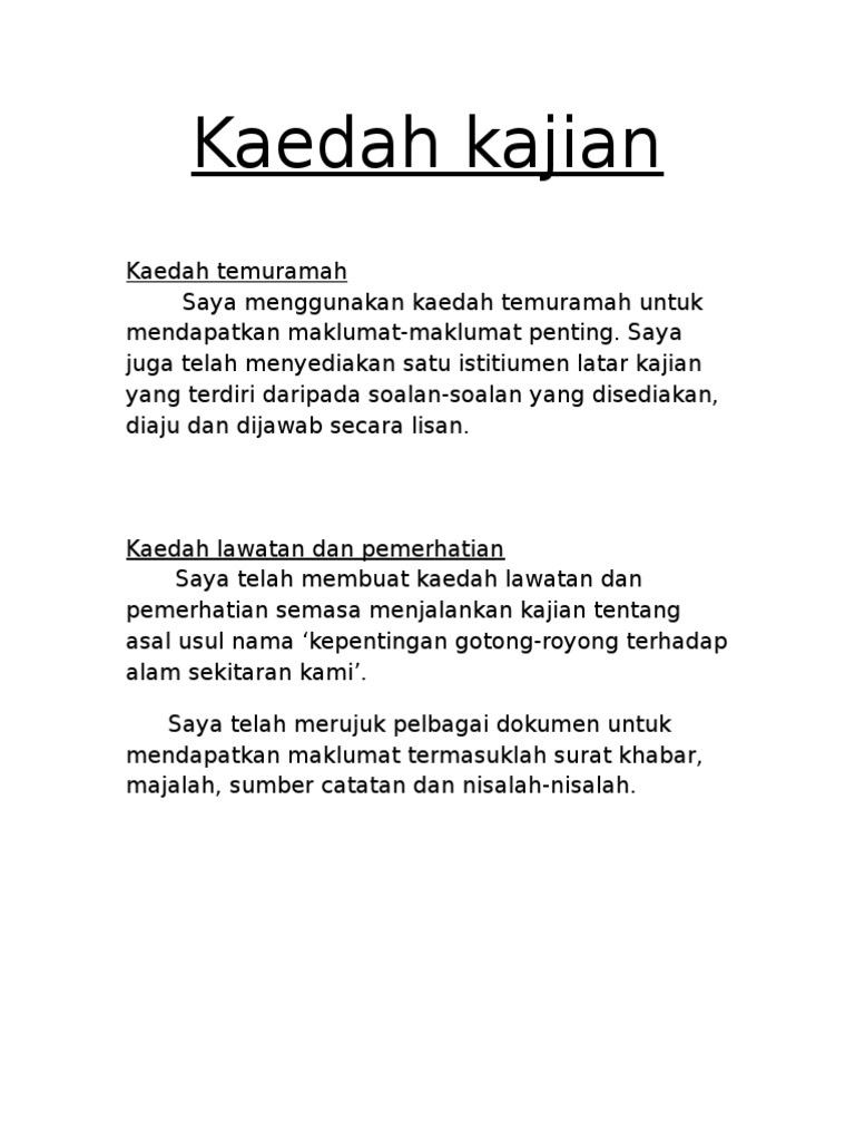 Kaedah Kajian Folio Sejarah Tingkatan 3 - Sejarah tujuan manfaat. KAEDAH KAJIAN DAN PENGANALISISAN DATA Pengenalan Bab ketiga ini terbahagi kepada tujuh bahagian utama iaitu metodologi kajian tatacara pengumpulan data pengelolaan temu duga. 52 Temu bual Saya menggunakan kaedah ini untuk mengetahui kepentingan pengangkutan awam di kawasan kajian.