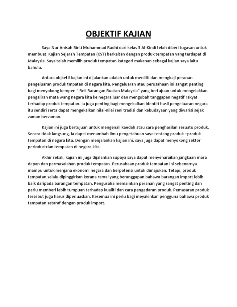 342012 2 responses to 12 Latar Belakang Kajian shira April 5 2012 at 426 pm buku sulalatus salatin ni banyak manfaat sebab menceritakan sejarah zaman dulu. Aktiviti ini akan meningkatkan peluang pekerjaan dalam sektor perkhidmatan dan meningkatkan aliran masuk mata wang asing. Objektif Kajian Sejarah Pt3 2020 Contoh Terbaik.