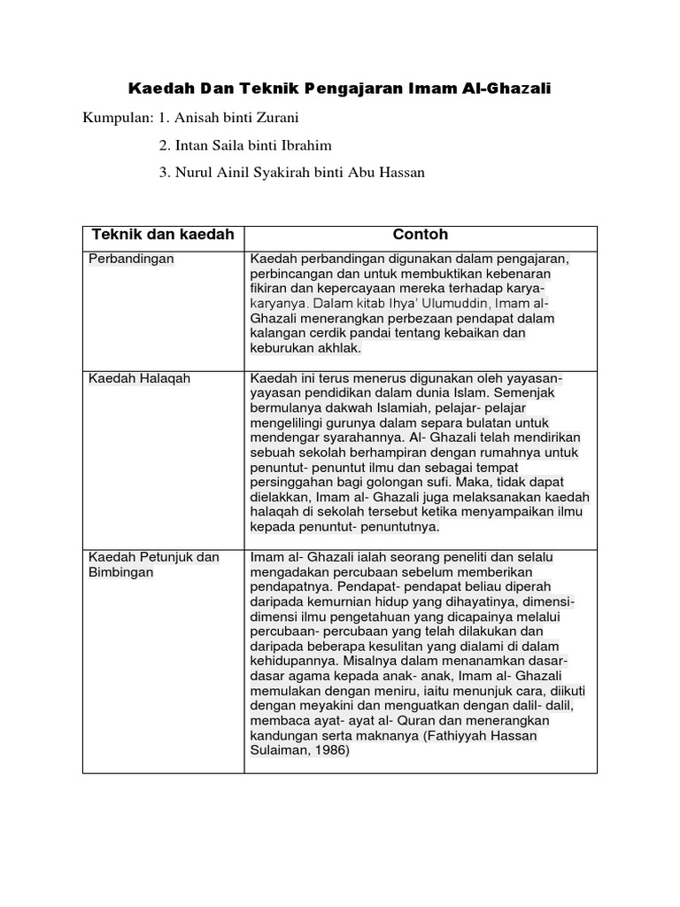 Kaedah Dan Teknik Pengajaran Imam Al Ghazali Pdf