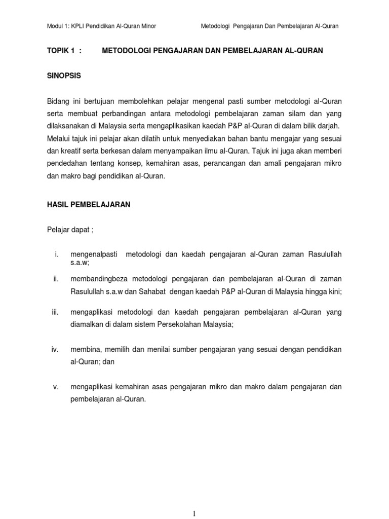 KAEDAH PENGAJARAN PENDIDIKAN ISLAM Saturday January 12 2019. Dalam hal ini manhaj pengajaran dan pembelajaran al-Quran didapati telah dibawa sejak zaman berzaman sebermula Islam masuk ke rantau ini secara tradisi dan tidak didokumenkan dari segi falsafah teori dan kaedah. Pengajaran al-Quran Pada Zaman Rasulullah Sejarah pengajaran al-Quran menurut al-Buti 1991 dan Mohd Yusuf 2000 bermula ketika Nabi Muhammad saw sedang beribadat di Gua Hira.