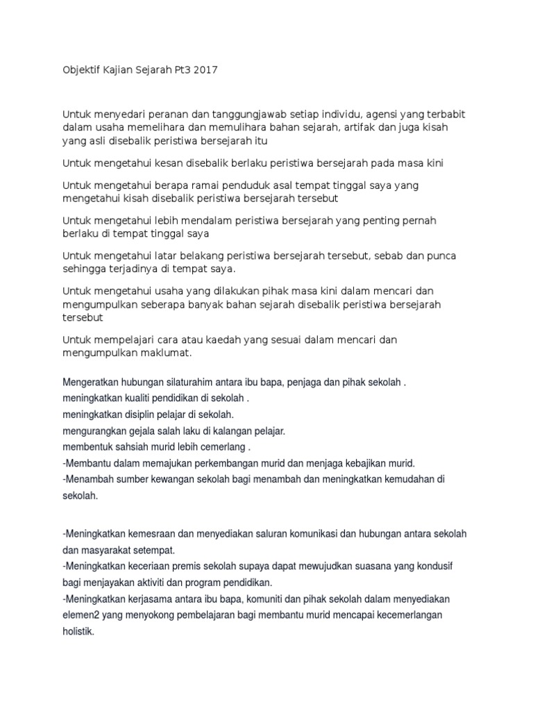 For more information and source see on this link. Remember to have at least one document and one. Objektif Kajian Sejarah Pmr.