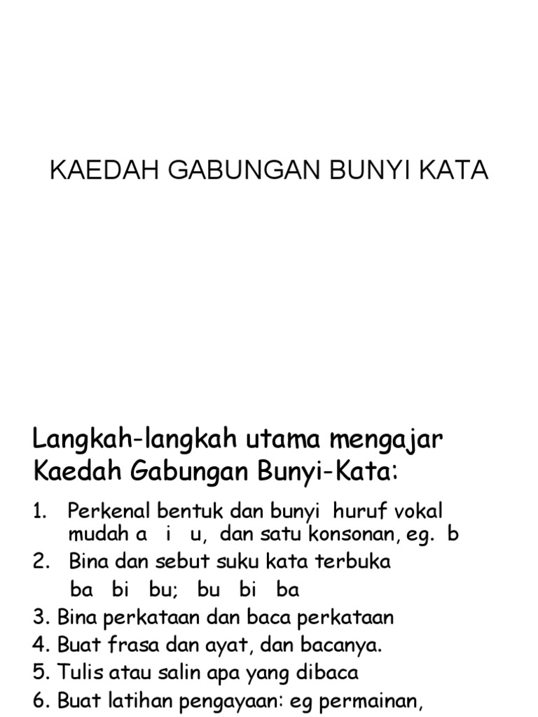 Huruf vokal yang kerap digunakan ialah a i dan u. Ø Bersoal jawab dengan guru tentang cerita dua orang. Asas Kaedah Gabungan Bunyi-Kata Kaedah ini merupakan satu kaedah yang sistematik.