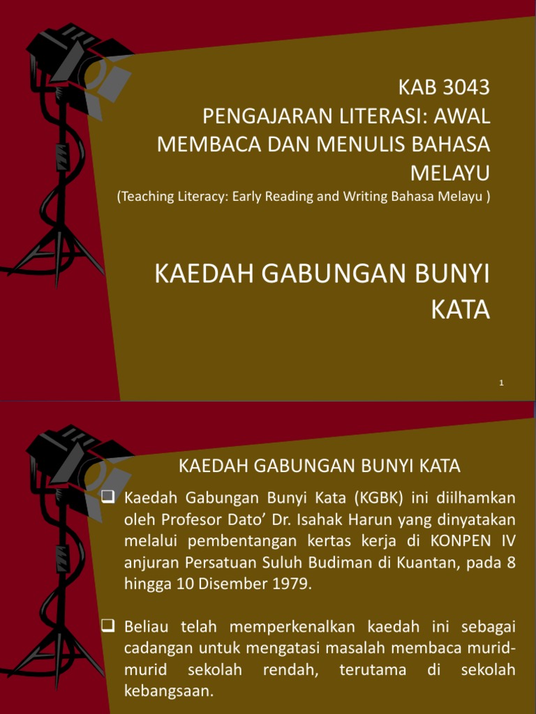 Minta anak anda menyebut huruf vokal yang ditunjukkan. Latar belakang Kaedah Gabungan Bunyi-kata ini diilhamkan oleh Profesor Dato Dr. Kaedah Gabungan Bunyi-kata KGBK 21.