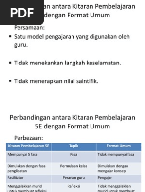 Perbandingan Antara Kitaran Pembelajaran 5e Dengan Format Umum Pdf