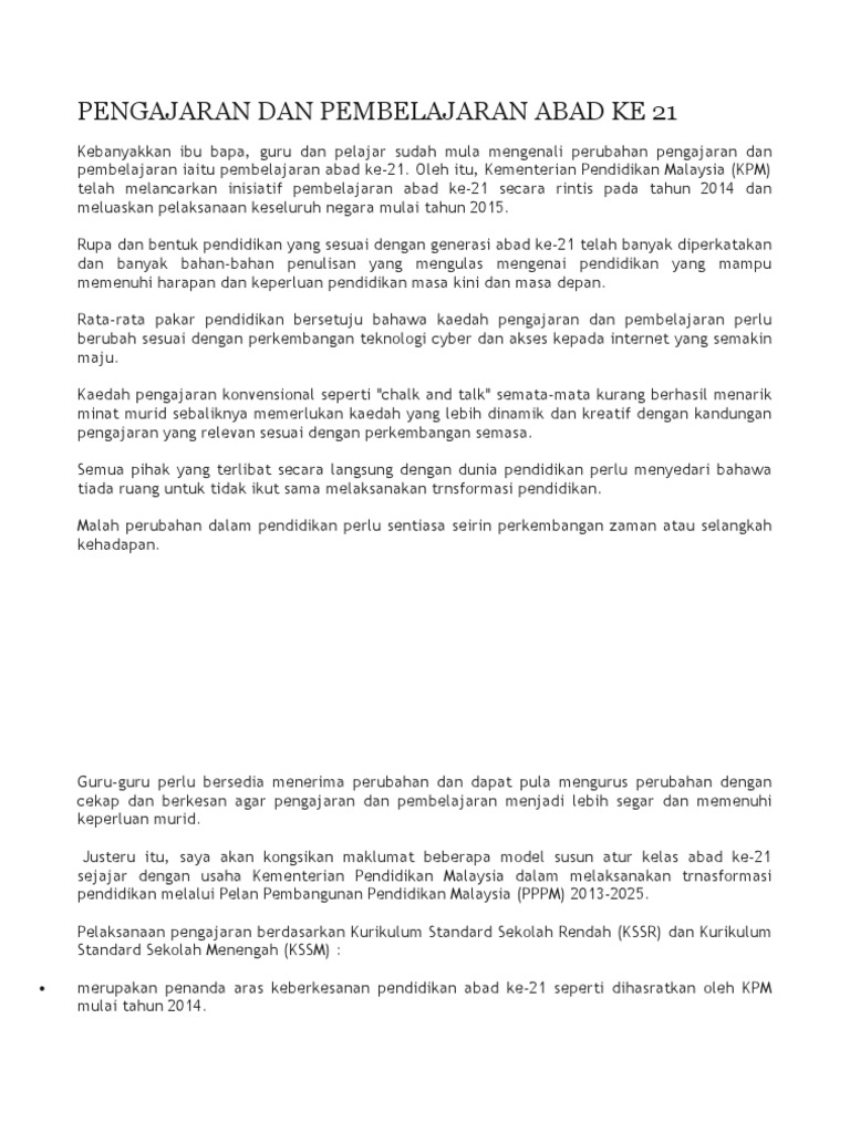 Pengajaran Dan Pembelajaran Abad Ke 21 Pdf