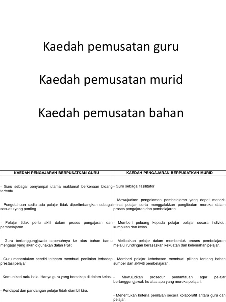 Perbezaan Kaedah Pengajaran Pembelajaran Berpusatkan Guru Dan Murid Pdf