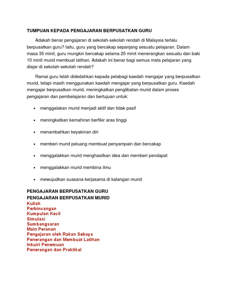 Kaedah Pembelajaran Berpusat Murid Pdf