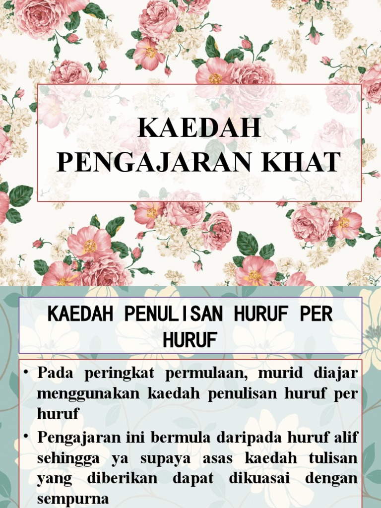 A Objektif Pengajaran b Jangka masa Pengajaran c Bahan Pengajaran d Latar belakang Pelajar dan e Jumlah dan Susunan Pelajar a Objektif Pengajaran Sebelum memulakan pengajaran adalah perlu bagi seseorang pengajar untuk. Kaedah pengajaran Jawi yang disarankan oleh pihak Kementerian Pendidikan Malaysia KPM dan telah diberi pendedahan secara khusus kepada bakal-bakal guru Pendidikan Islam dan j-QAF Kementerian Pelajaran Malaysia 2006. Pelajaran menulis khoth arab naskhi jilid 2.