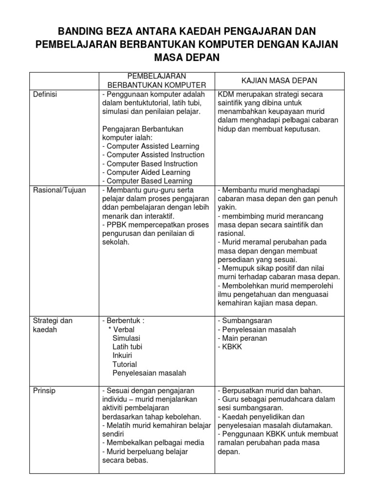 Banding Beza Antara Kaedah Pengajaran Dan Pembelajaran Berbantukan Komputer Dengan Kajian Masa Depan Pdf