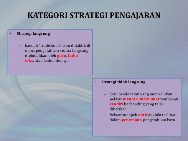 Jenis hasil pembelajaran pelajar. Strategi pengajaran tidak langsung merupakan strategi berpusatkan pembelajaran yang akan menggalakkan penglibatan murid dalam proses pembelajaran. Melalui pemerhatian saya didapati merekamengalami.