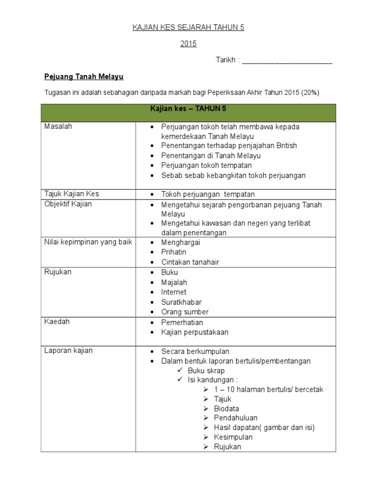 Kajian Kes Sejarah Tahun 5 Pdf